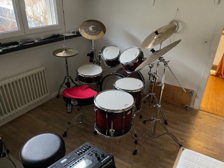 Custom made Kumu Drumset (FIN) / Meinl Byzance hand hammered Cymbals, in Mettau (AG)